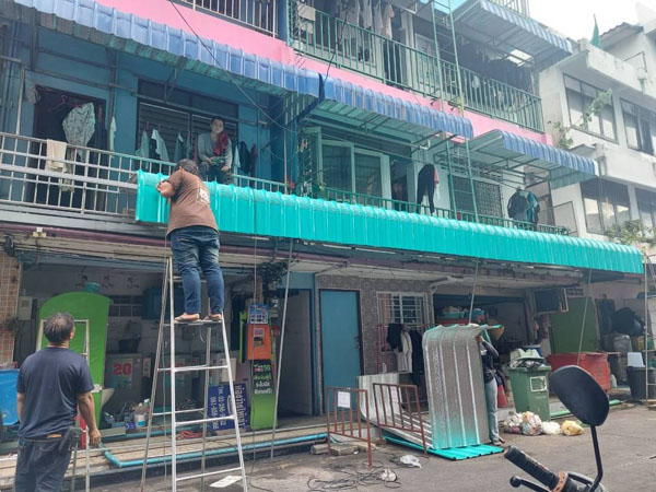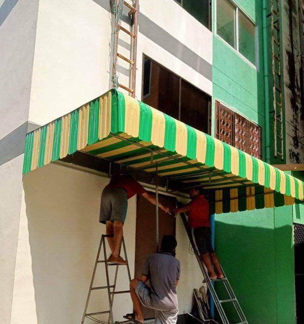 > งานติดตั้งผ้าใบหน้าร้าน กันแดด กันฝน > งานติดตั้งกันสาดเมทัลชีท > งานติดตั้งโครงหลังคา........